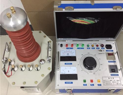 5、試驗中,如果試品短路或故障擊穿,控制箱中的過流繼電器工作,此時,將調(diào)壓器回至零位,并切斷電源后,方可將試品取出。
