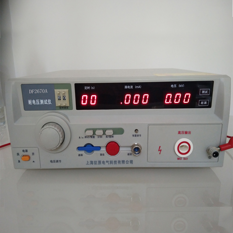 耐電壓測試儀是測量耐壓強(qiáng)度的儀器,它可以直觀、準(zhǔn)確、快速、可靠地測試各種被測對象的擊穿電壓、漏電流等電氣安全性能指標(biāo),并可以作為高壓源用來測試元器件和整機(jī)性能。上海征原公司耐電壓測試儀產(chǎn)品系列是按照IEC、CSA、UL、JIS等國際國內(nèi)的安全標(biāo)準(zhǔn)要求設(shè)計(jì)的,耐壓輸出范圍1kV~5kV,漏電流測試范圍0~20mA。適合各種家用電器、電源開關(guān)、電線電纜、變壓器、接線端子、高壓膠木電器、電機(jī)、醫(yī)療、化工、儀器儀表等,以及強(qiáng)電系統(tǒng)的安全耐壓和漏電流的測試、同時也是科研實(shí)驗(yàn)室、技術(shù)監(jiān)督部門不可缺少的耐壓試驗(yàn)設(shè)備。