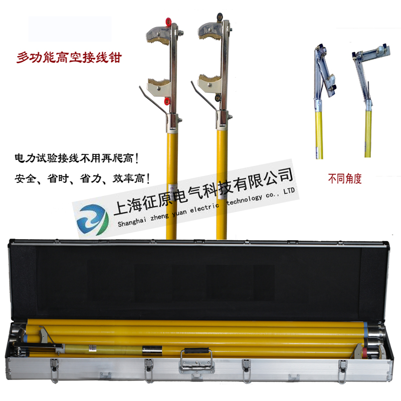 6、實(shí)用性強(qiáng)。接線鉗的鉗頭角度可以變化,可完成接線位置不同角度、不同厚度、不同直徑、高度在8米以下的測(cè)試或檢修接地的接線工作。