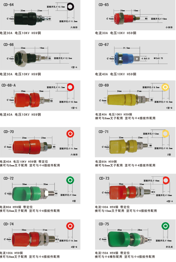 果正確等特性,CD系列接線柱系列,芯桿采用導(dǎo)電性